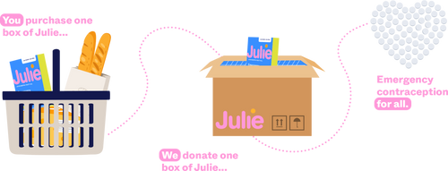 That's why every time a Julie is purchased, we donate one to someone in need. When you support Julie, you are helping a fellow human access free and safe emergency contraception.